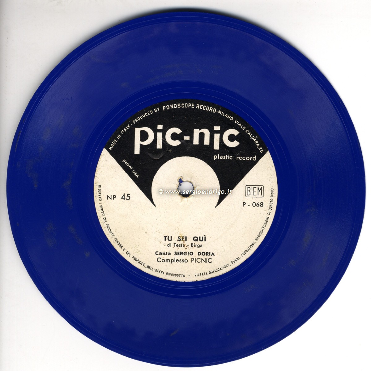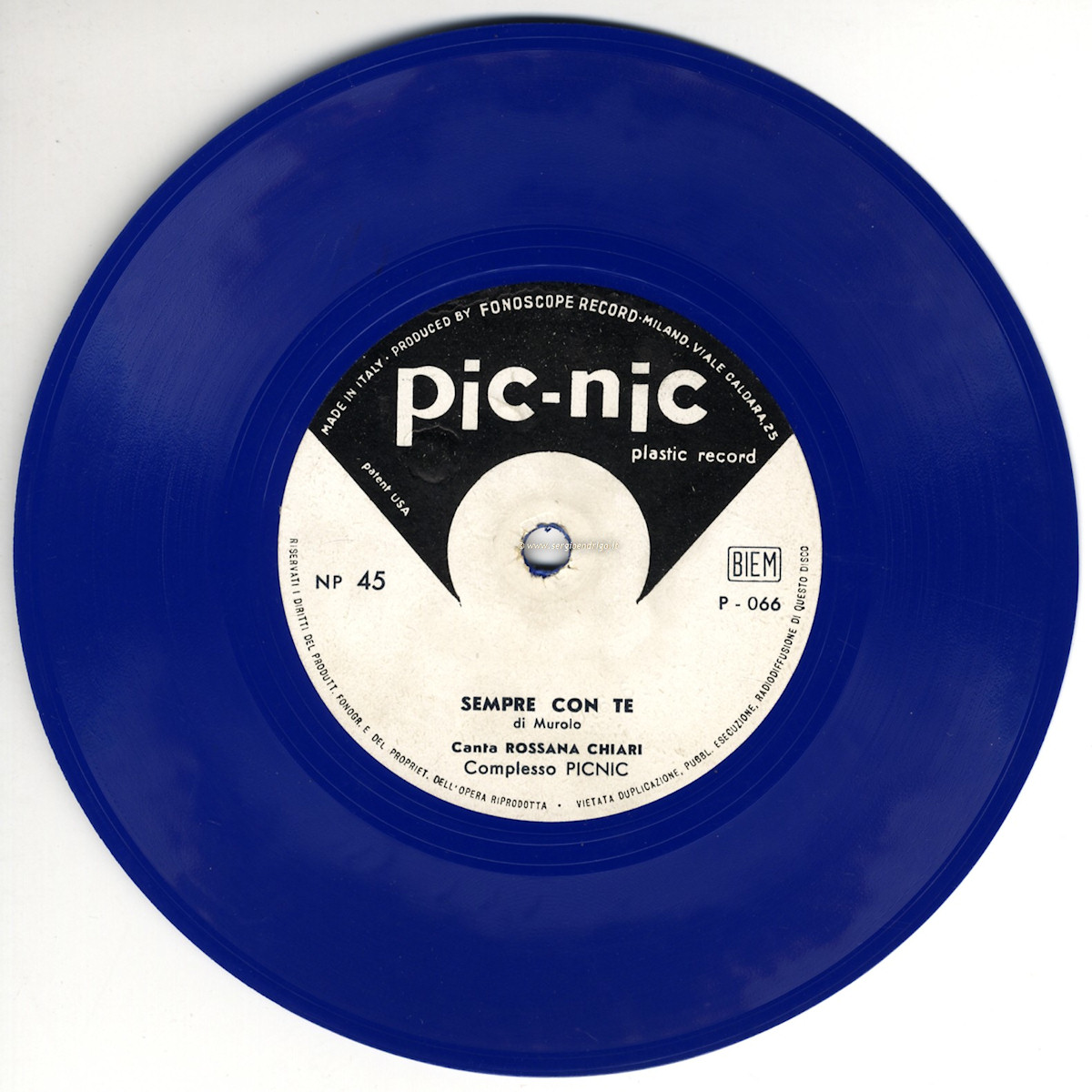 • si tratta di un “flexi” a due facciate su vinile colorato: un disco di plastica morbida e flessibile, non in vendita nei circuiti ufficiali ma distribuito come omaggio per acquisti effettuati in una catena di grandi magazzini